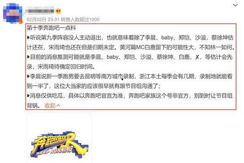 亲爱的观众朋友们,是不是已经迫不及待地想要知道《奔跑吧》第十季的最新动态了呢?没错,这个夏天,这档全民喜爱的综艺节目又将带给我们怎样的惊喜呢?今天,就让我带你一起揭开《奔跑吧》第十季的神秘面纱,看看都有哪些新鲜事儿等着我们!